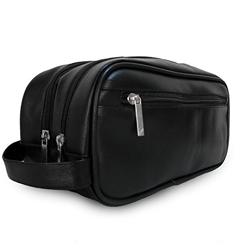 - The WATERPROOF Leather also makes this travel toiletry bag extremely easy to clean if any drips or spills were to occur during your travels. Our unique toiletry bag can be used by men or women and has been outfitted with a CARRYING HANDLE for your convenience.
